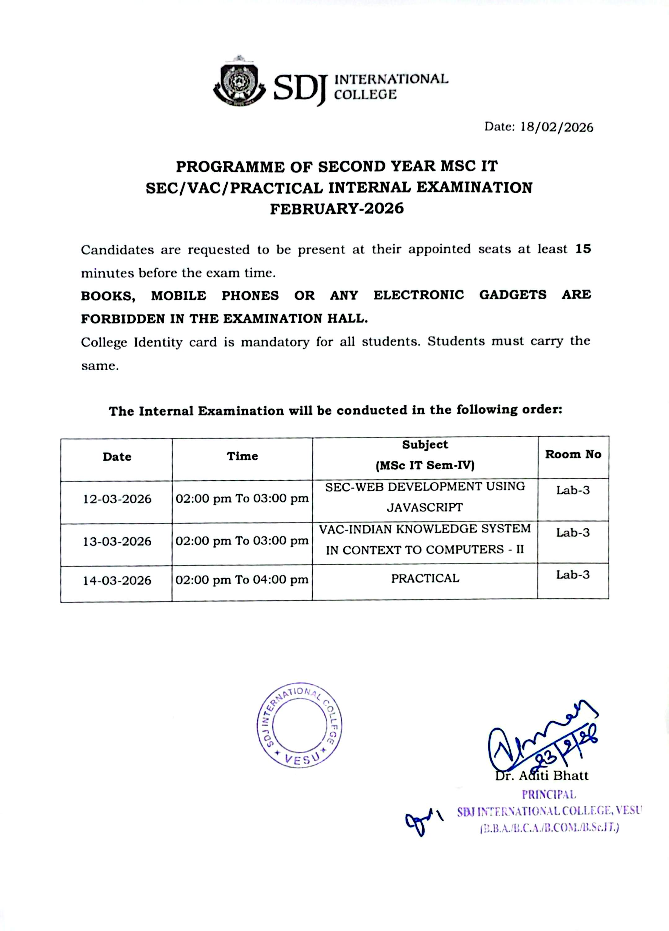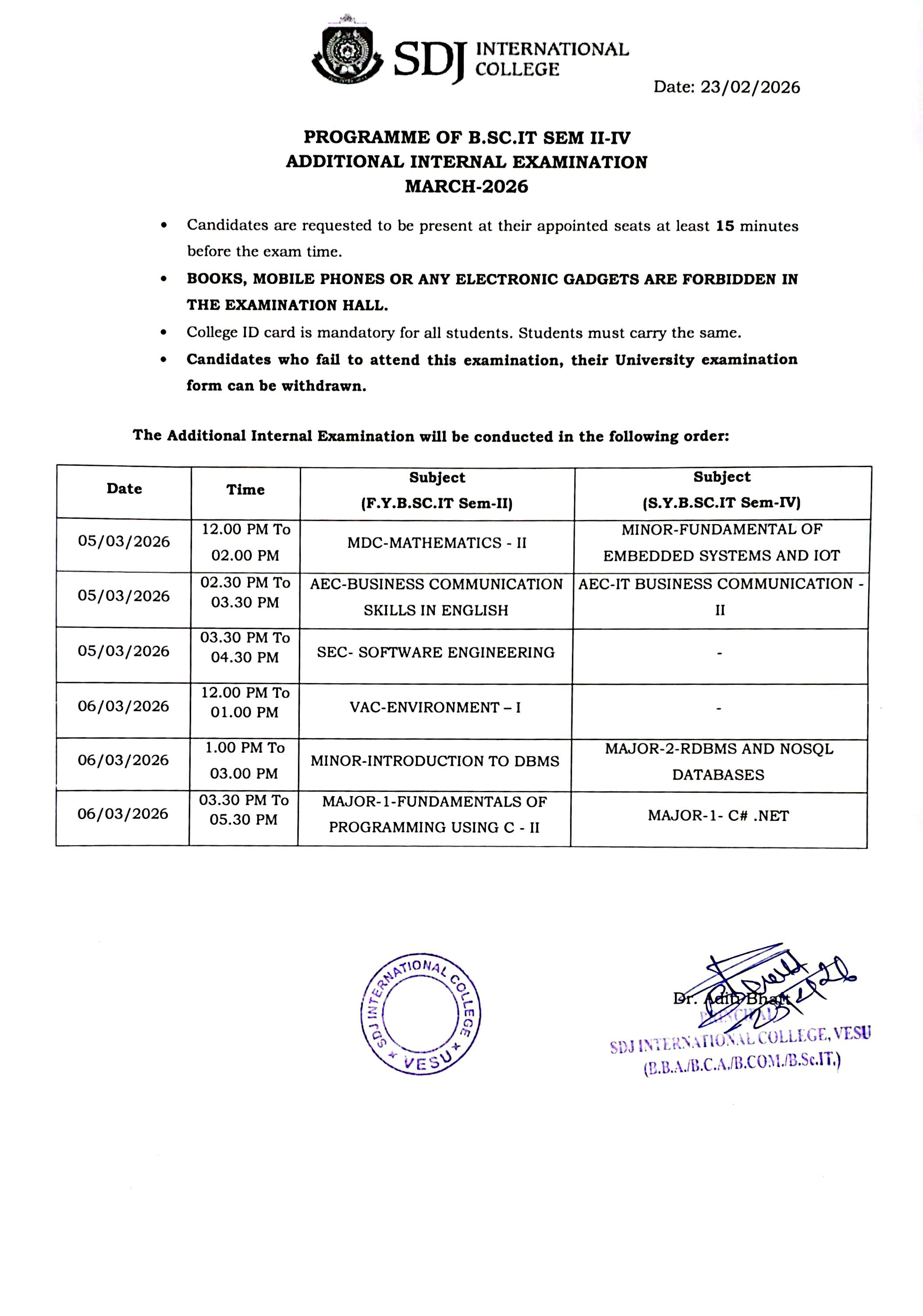 BSC IT SEM II-IV Additional Internal Examination Mar-26 AY2025-26