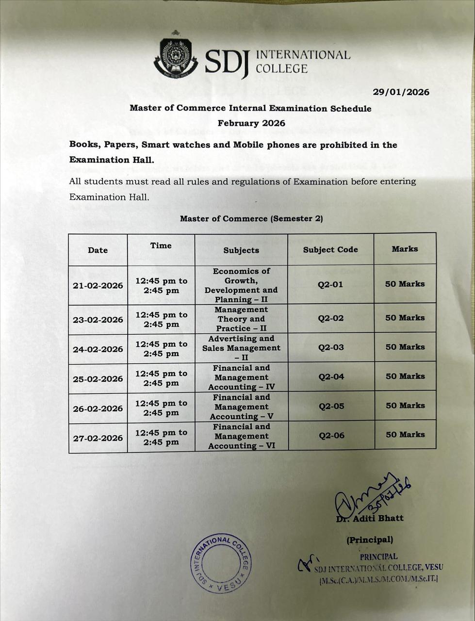 SDJ International College, Vesu proudly announces the results of the Master of Management Studies (M...