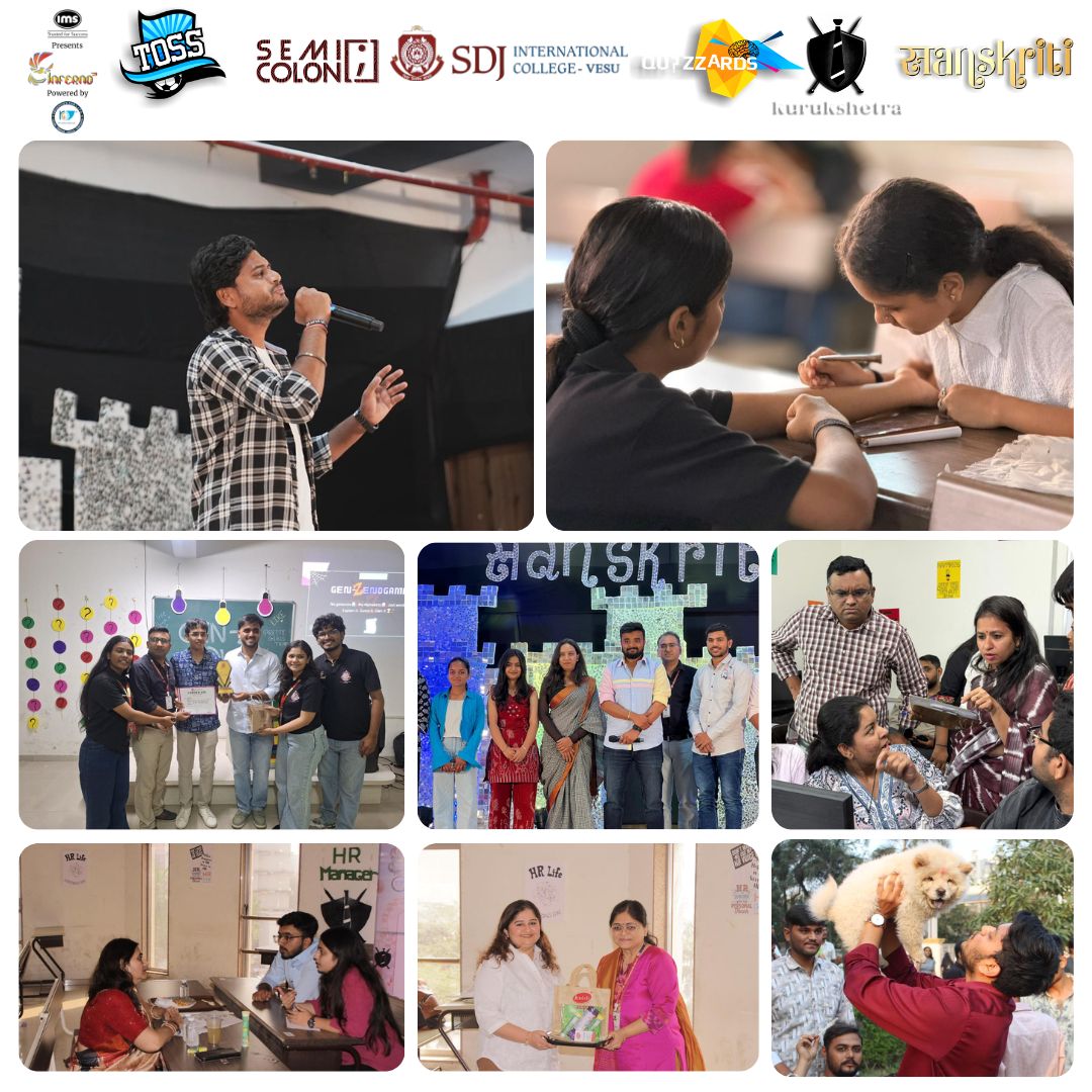 SDJ International College, Vesu organized SUITS 6.0, an engaging management event aimed at enhancing leadership, strategic thinking, teamwork, and decision-making skills among students. The event saw enthusiastic participation and a competitive spirit, with students actively engaging in various management-related activities. SUITS 6.0 served as a practical learning platform, encouraging experiential learning beyond the classroom and fostering essential managerial competencies among aspiring professionals.