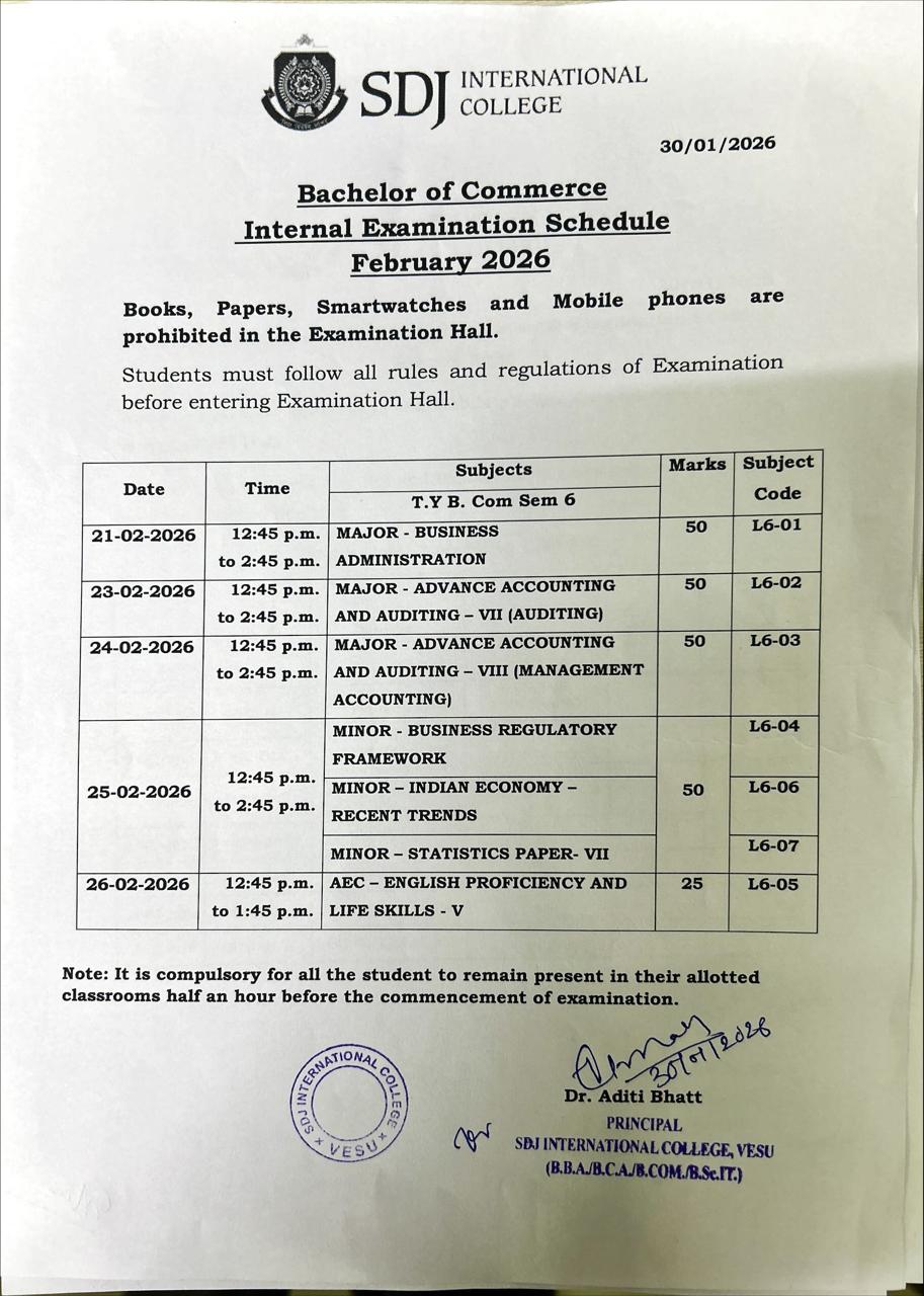 - TYBCA SEM-6 INTERNAL REVISED EXAM SCHEDULE AY2025-26 19/Jan/2026